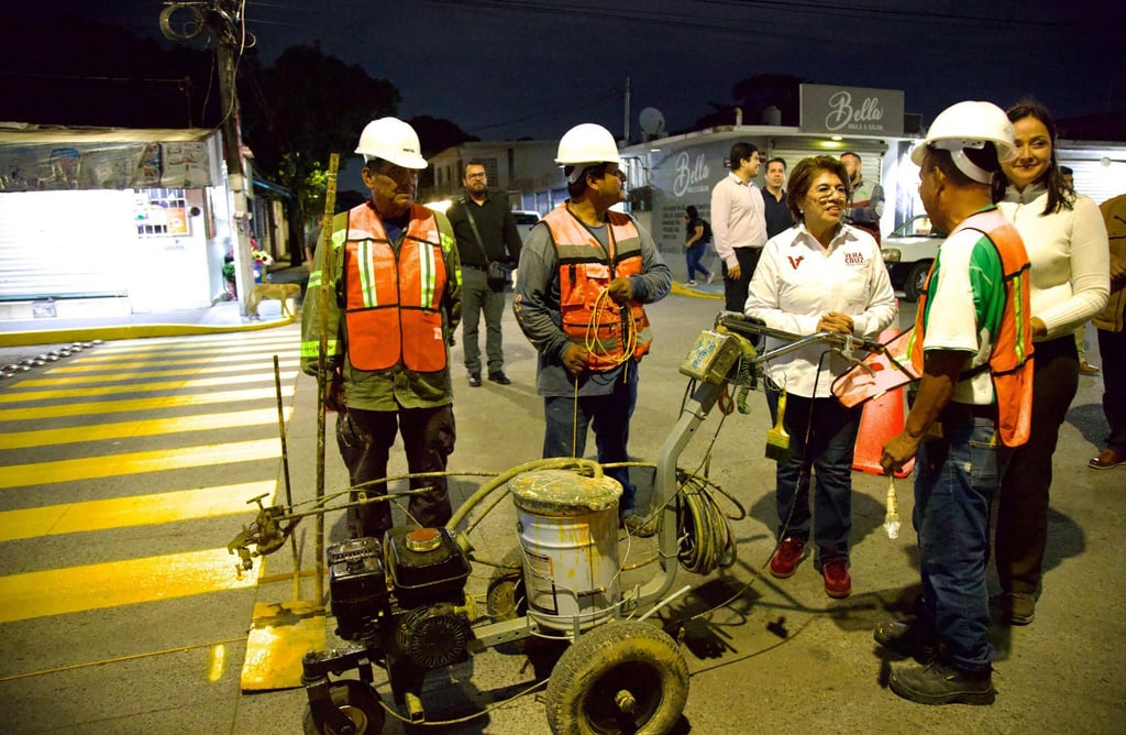 Alcaldesa de Veracruz supervisa trabajos nocturnos de mantenimiento urbano en Las Amapolas