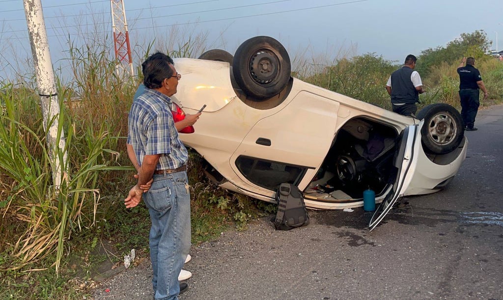 La mañana de este miércoles se registró una aparatosa volcadura en la zona de Nuevo Veracruz, luego de que el conductor de un vehículo particular perdiera el control al descender de un puente. A pesar del impacto, no se reportaron personas lesionadas.