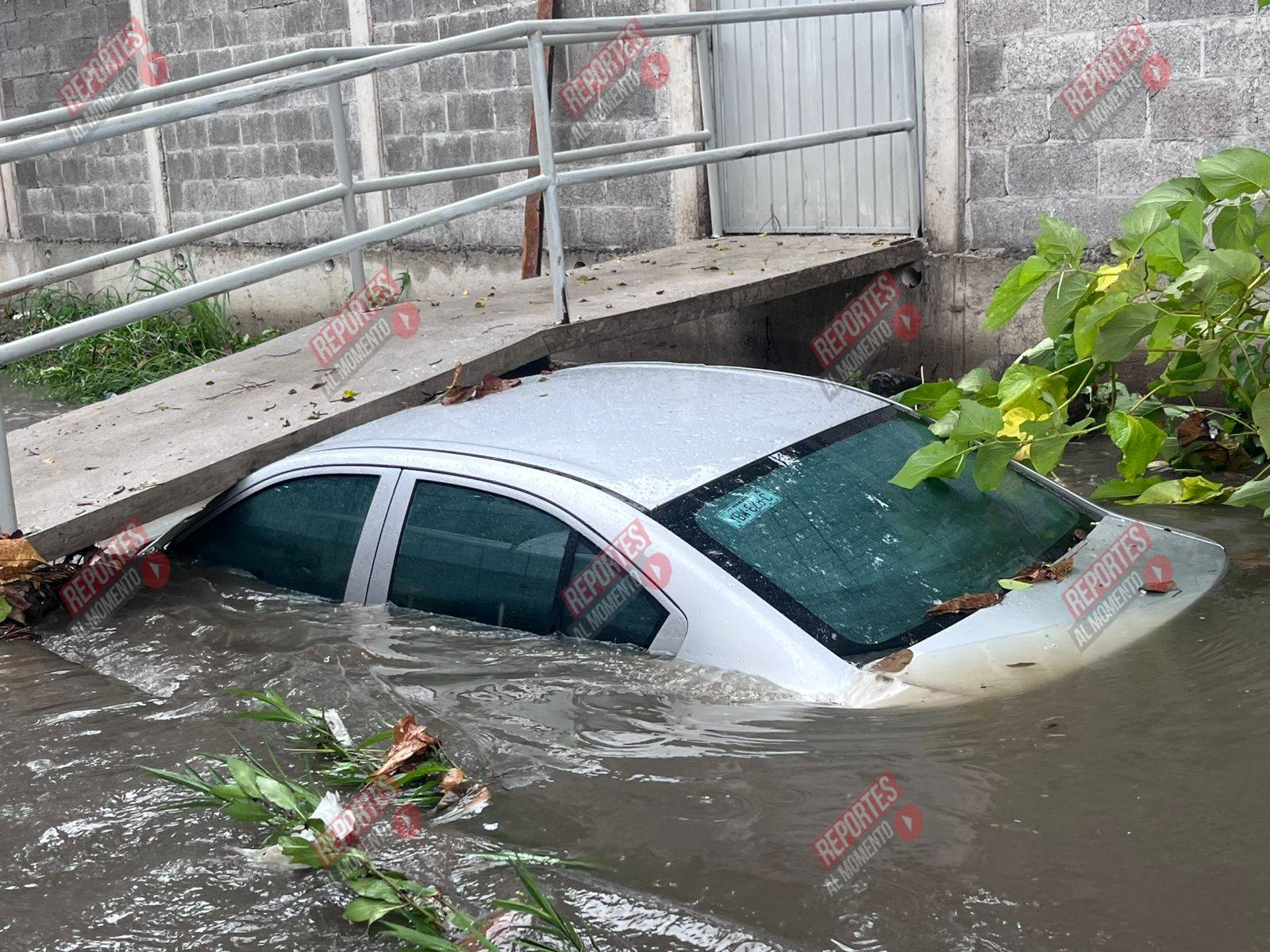 Sin embargo, la fuerza de la corriente y la poca visibilidad provocaron que el vehículo cayera en un canal a desnivel que se encontraba sin señalización y oculto bajo el agua. El automóvil fue arrastrado varios metros hasta quedar atorado bajo un pequeño puente.