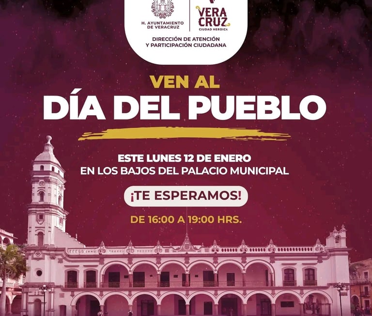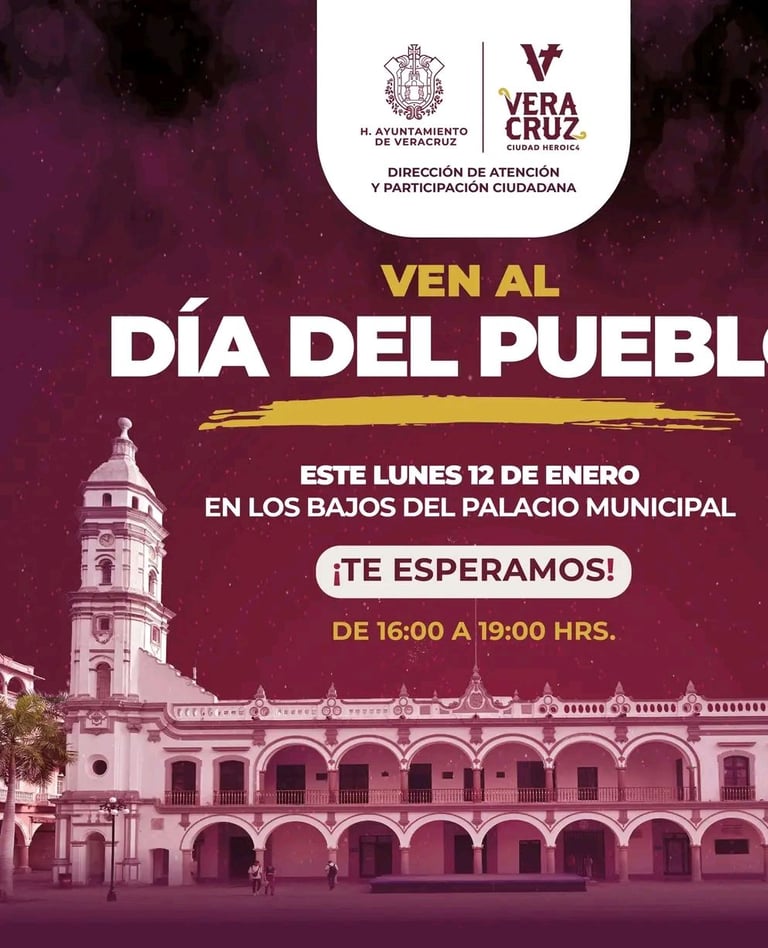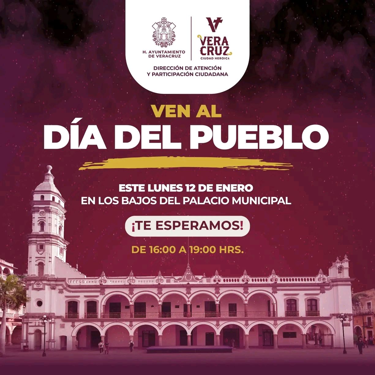 Este lunes 12 de enero, de 4:00 a 7:00 p.m., estaremos en los bajos del Palacio Municipal para encontrarnos de frente. Estaré junto a todo el equipo del gobierno de nuestra Ciudad Heroica De Veracruz atendiendo personalmente tus solicitudes y dándote respuestas directas. Nunca más una ciudad en la que la voz del pueblo no cuenta.
