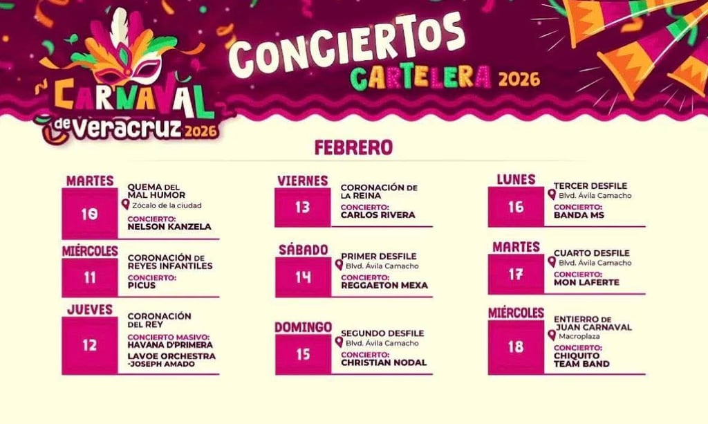 Con estos anuncios, se espera que el Carnaval 2026 sea uno de los más vibrantes de los últimos años, reafirmando a Veracruz como sede de una de las fiestas más importantes de México.
