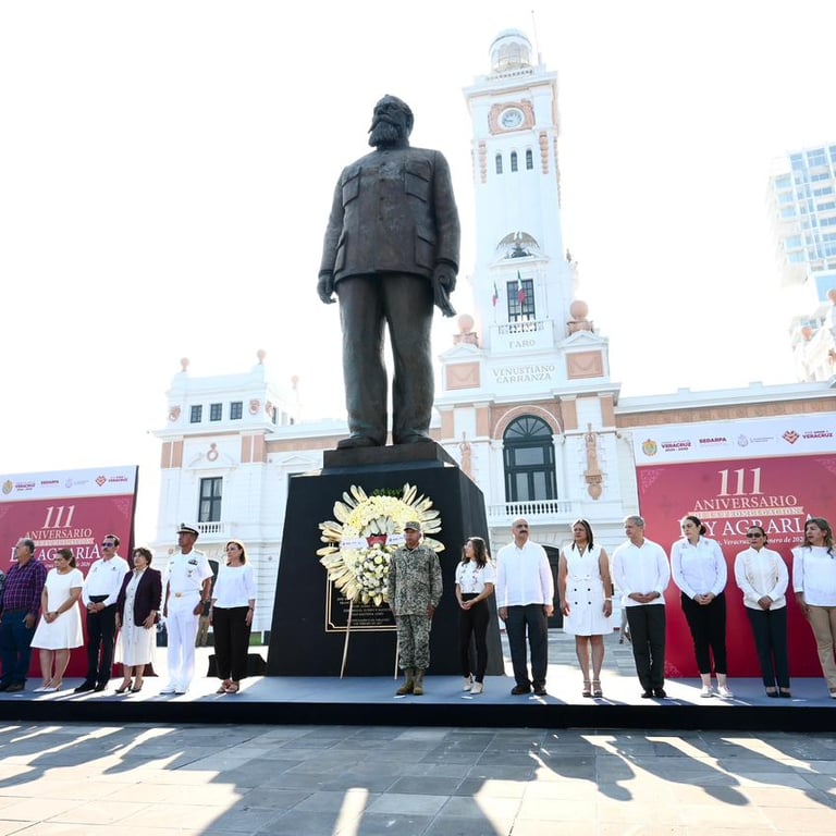 ***Al conmemorar el 111 aniversario de la Ley Agraria, la alcaldesa de Veracruz, Rosa María Hernández Espejo, destacó que el impulso al campo y a las comunidades rurales es una prioridad compartida con el Gobierno de México y el Gobierno del Estado. La alcaldesa de Veracruz, Rosa María Hernández Espejo, acompañó a la gobernadora del estado, Rocío Nahle García, en la conmemoración del 111 aniversario de la promulgación de la Ley Agraria, acto en el que se refrendó el compromiso de los tres órdenes de gobierno con el fortalecimiento del campo y la justicia social, como una tarea vigente y prioritaria para el desarrollo nacional. Durante su mensaje, la presidenta municipal afirmó que el legado agrario sigue vigente en los gobiernos de la Cuarta Transformación y destacó que la política agropecuaria del Gobierno de México, encabezado por la presidenta Claudia Sheinbaum Pardo, impulsa la soberanía alimentaria, el apoyo a pequeños productores y el fortalecimiento del ejido. “El campo hoy vuelve a ser eje del desarrollo nacional”. En ese contexto, Hernández Espejo enfatizó que, bajo el liderazgo de nuestra gobernadora, ese compromiso se traduce en desarrollo rural con justicia social, en acompañamiento técnico, impulso productivo y respaldo a quienes sostienen la vida en el campo. La alcaldesa sostuvo que se trabajará de manera decidida para apoyar a la zona rural y fortalecer a los productores locales, reconociendo la importancia de la actividad agrícola que se desarrolla en comunidades como San Julián, Santa Fe, Vargas, Paso San Juan y Santa Rita.
