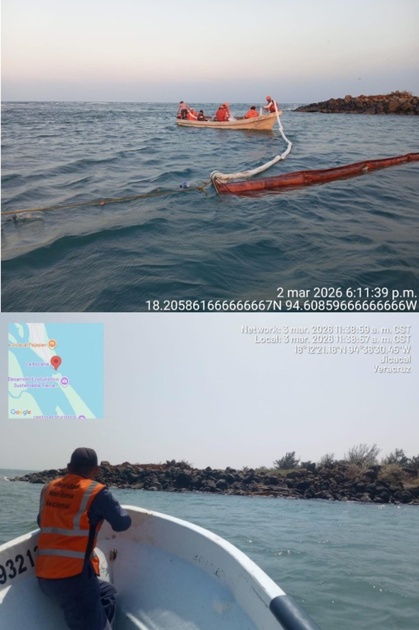 Las acciones son coordinadas por el Centro de Comando Unificado de Veracruz, con la participación de la Secretaría de Marina, Petróleos Mexicanos (Pemex), Protección Civil, la Agencia de Seguridad, Energía y Ambiente (ASEA), la Secretaría de Medio Ambiente y Recursos Naturales (Semarnat) y la Procuraduría Federal de Protección al Ambiente (Profepa), junto con autoridades estatales y comunidades pesqueras.