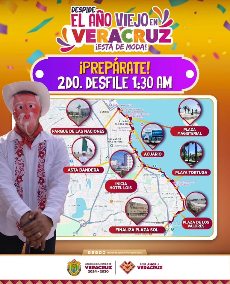 ¿Listos para el 2do. Desfile de El Año Viejo? 👴🎉 La cita es el 1 de enero a la 1:30 a.m., para iniciar el 2️⃣0️⃣2️⃣6️⃣ con la mejor fiesta. Checa el mapa aquí 👇 y planea tu lugar para disfrutarlo al máximo 🌴.