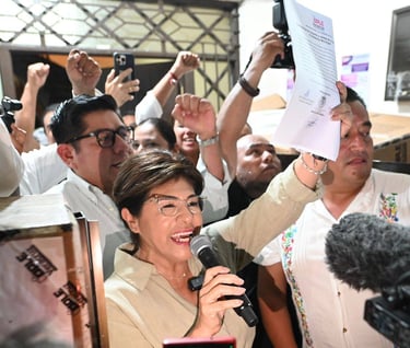 En un ambiente de alegría, aplausos y consignas de unidad, Rosa María agradeció también al Movimiento de Regeneración Nacional (Morena) y al Partido Verde Ecologista de México (PVEM) por postularla, así como a los brigadistas y ciudadanos que la respaldaron a lo largo de toda la campaña.